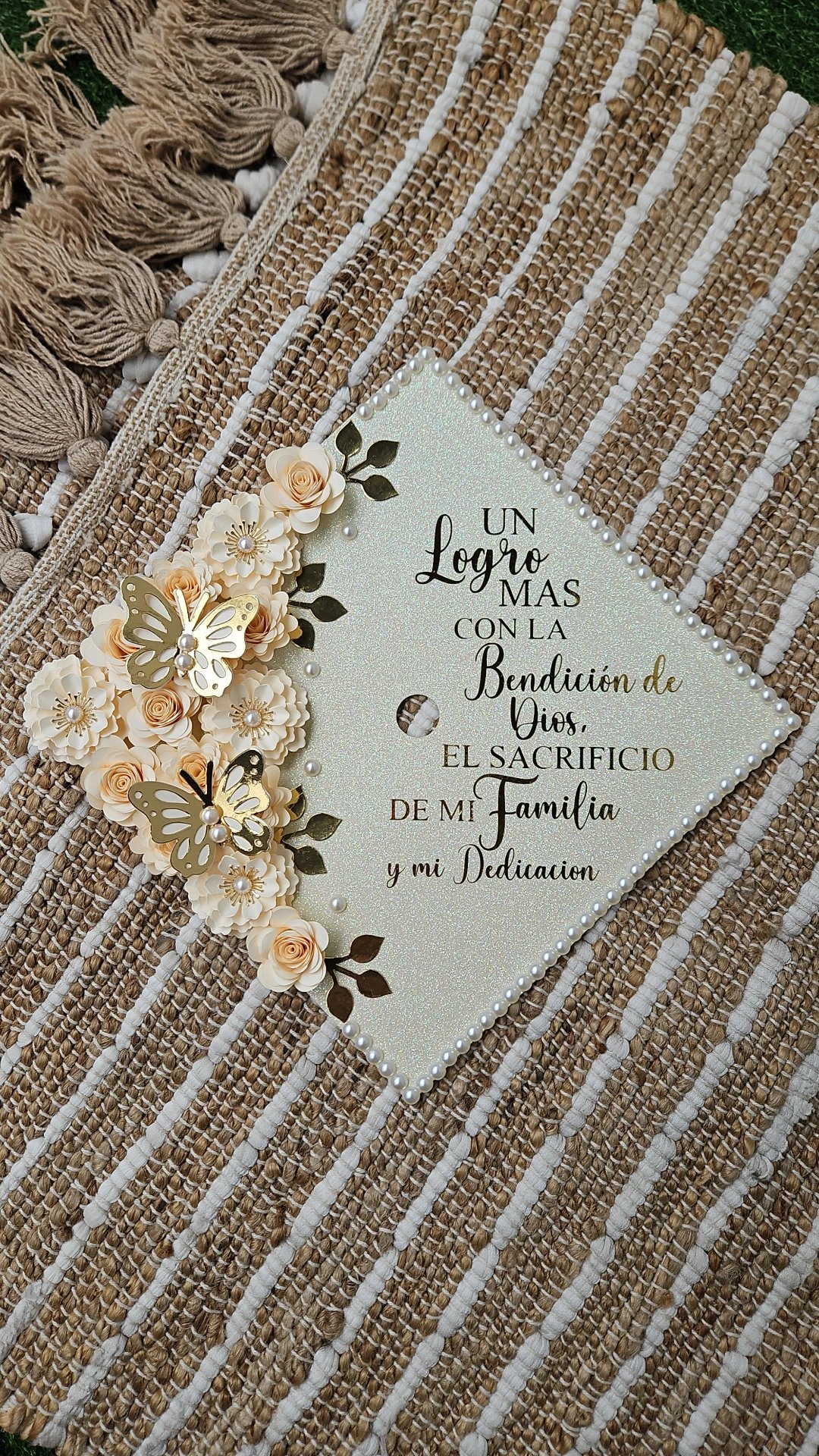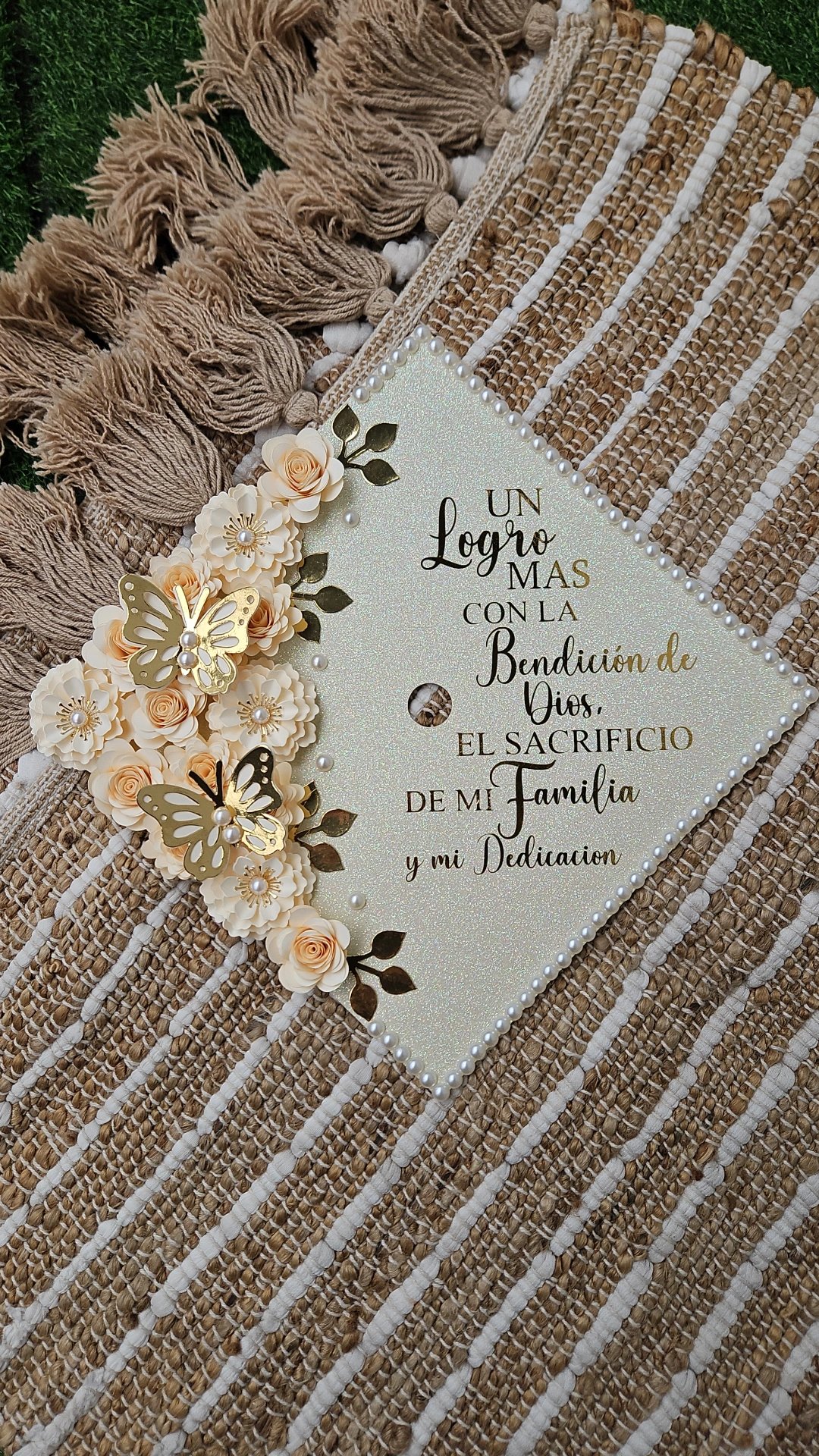 Custom Graduation Cap Toppers are made from card stock and vinyl. Personalize your cap with different colors, quotes, flowers, butterflies, etc.