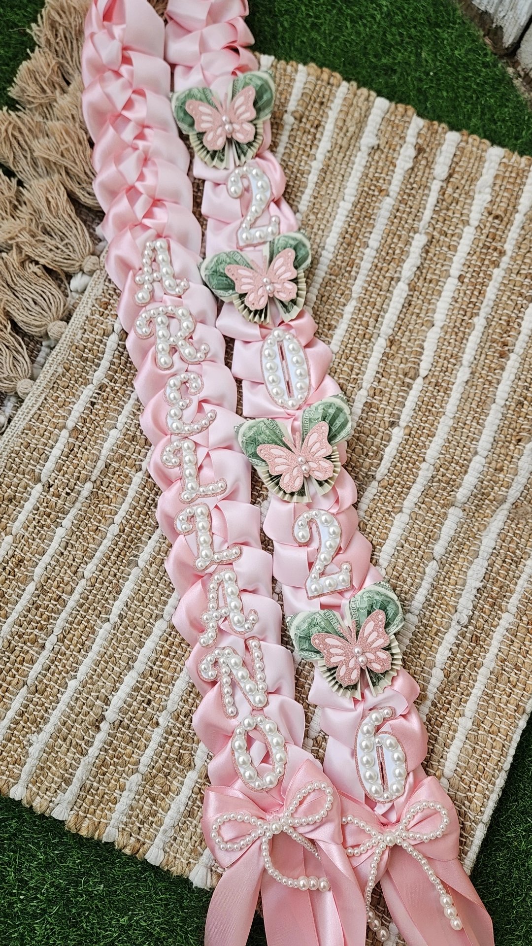 Pearl Graduation Lei Name and Year With 4 Butterflies